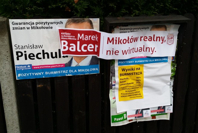 Podczas pierwszej części kampanii wszyscy Kandydaci naklejali plakaty i brakowało miejsca, co doprowadzało do wzajemnego zaklejania się. Można to było zrozumieć. Tylko dlaczego teraz, gdy w koło moich plakatów i informacji jest wystarczająco miejsca, Pan Balcer REALNYM CZYNEM zakleja konkurenta? Czy to ma być ten MIKOŁÓW REALNY i takie CZYNY A NIE SŁOWA ?